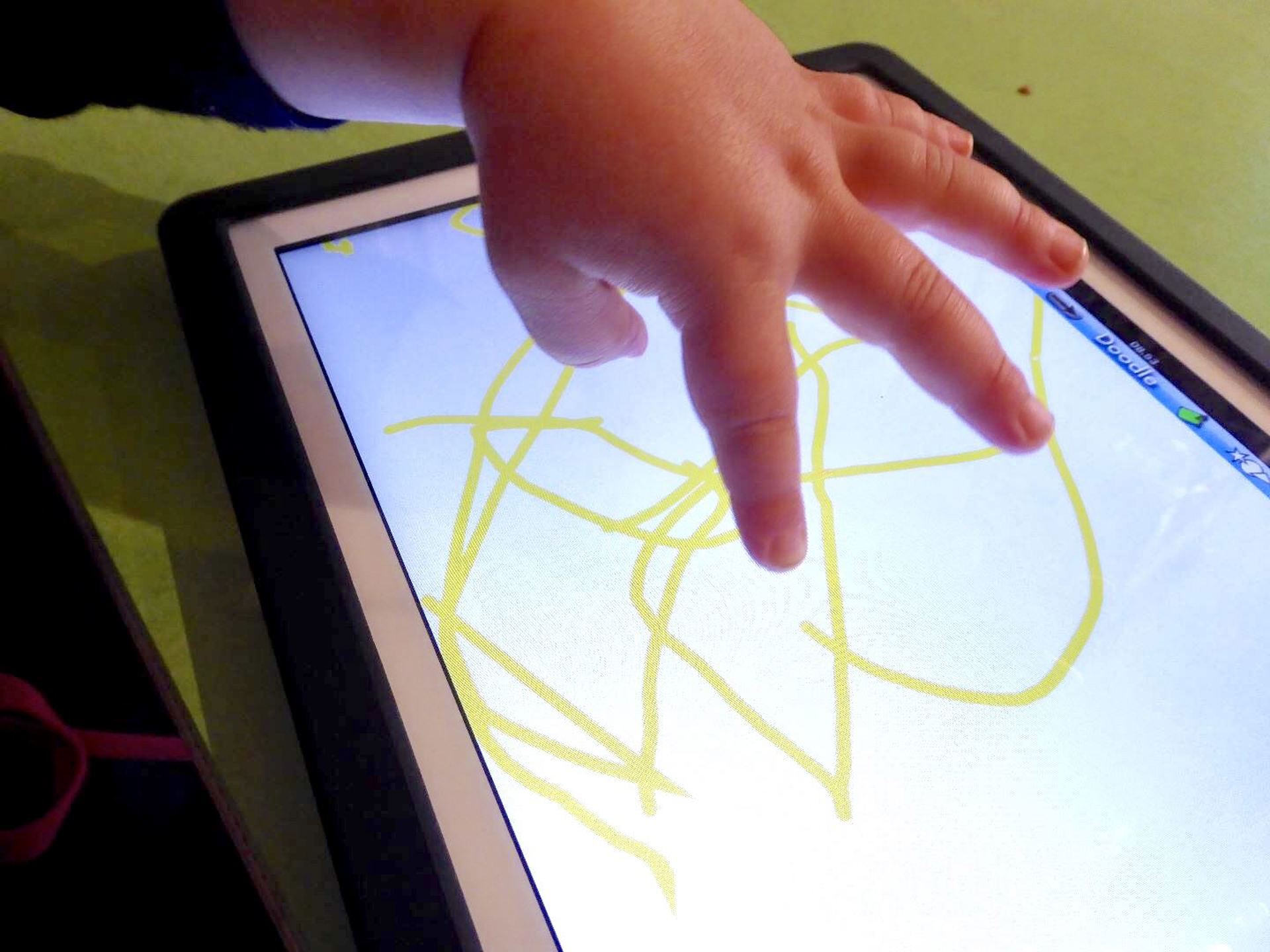 Rammeplanen sier at barn skal få positive opplevelser og en begynnende erfaring med bruk av digitale verktøy i barnehagen. Digital tegning fungerte kjempefint med de yngste barnehagebarna på Jonatan. Selv ettåringene fikk det til og det var spennende å se at fingeren laget en strek på skjermen. Noen måtte sjekke fingeren sin...hadde den fått farge? Var den blitt magisk? Dette var også en fin anledning til å snakke med barna om fargene. Kjempegøy!