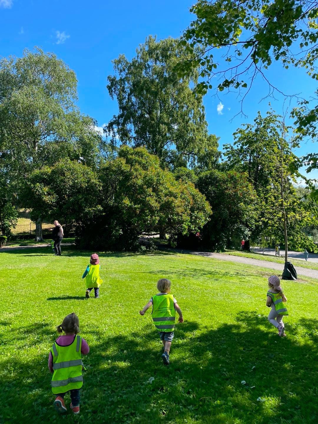 Kanskje vi finner troll i parken i dag? Vi må lete…jeg synes jeg ser noen små bak det store treet! Vi må løpe å se! Hmmm…kanskje de har gjemt seg høyt oppi trærne? Jeg ser et oppi treet! Kanskje dette er en liten dør i treet og trollene bor inni stammen? Vi må undersøke! Hva er dette på bakken- kan det være trollbæsj? Stort engasjement og stor fantasi, undring og spenning var det hvertfall på tur i parken i dag!🤗😍