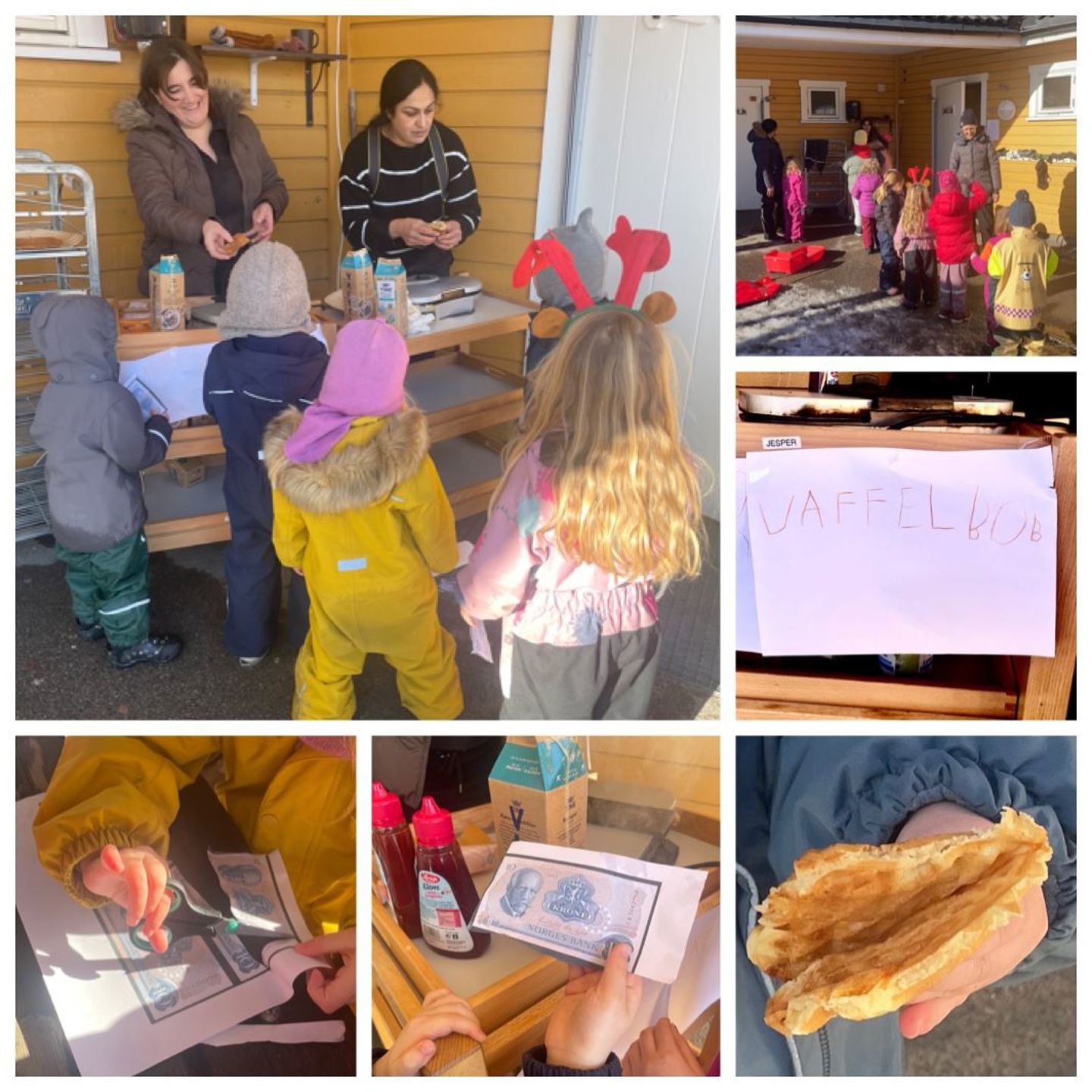 Når det er påskestemning i vinterferien, da er det lov å kose seg litt ekstra🤗 I utetiden lagde vi vaffelbod, skrev vaffelbodskilt, klippet vaffelpenger, sto pent i vaffelkø, «kjøpte» vafler og spiste vafler til magene nesten sprakk! For en herlig vaffeltorsdag i solskinnet!🧇🥰