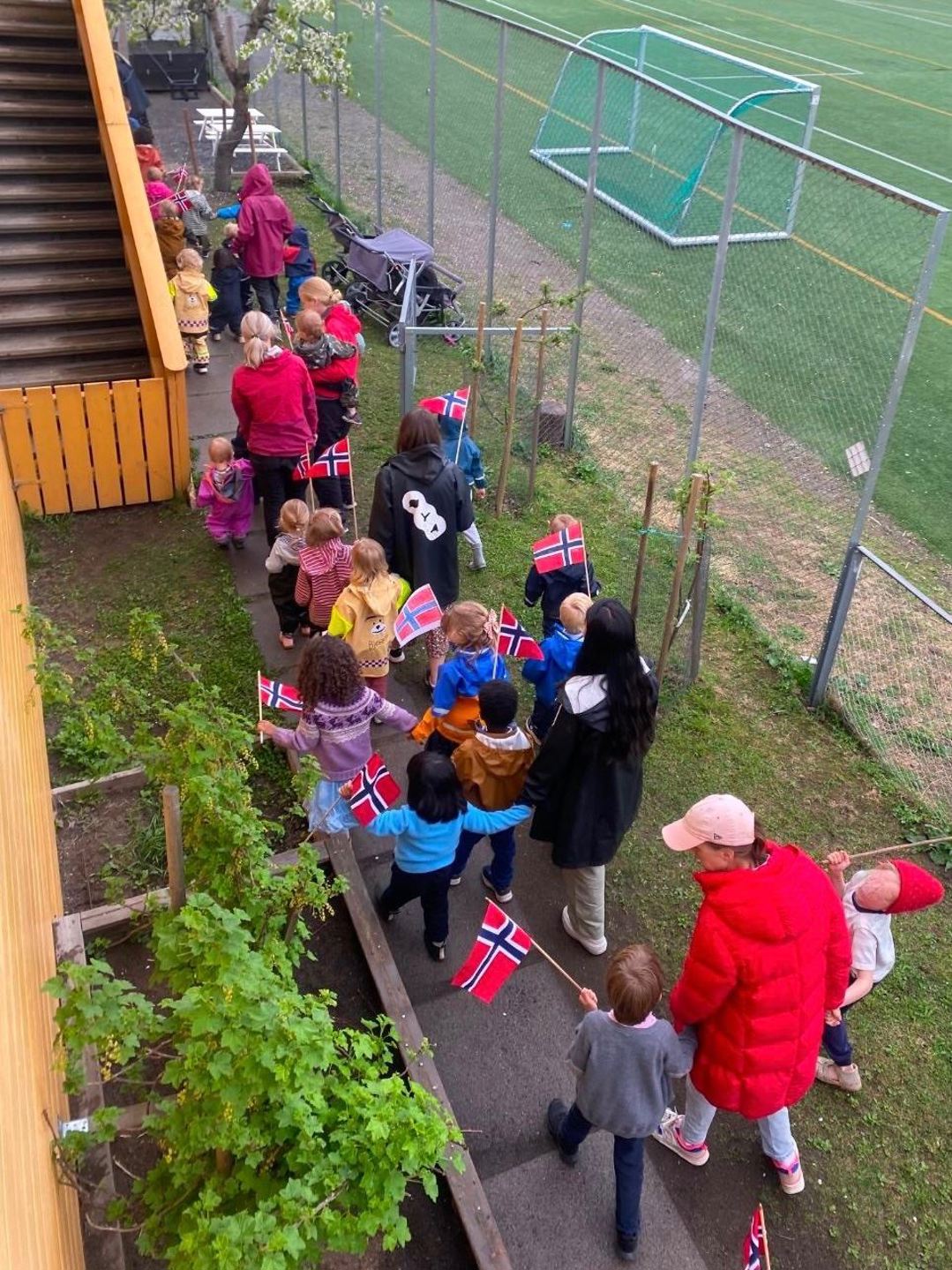 Gratulerer med dagen!🇳🇴 Vi markerte nasjonaldagen tradisjon tro med super stemning og godt humør. Vi gikk i tog både rundt barnehagen og med Kampen skolekorps. Barna fikk bære fanen og viftet med flaggene og var helt rå på å rope hipp hipp hurra! Leker som svampekast, potetløp og fiskedam engasjerte stort og dagen ble toppet med pølsekiosk og is. En fin-fin dag til tross for litt ruskete vær!