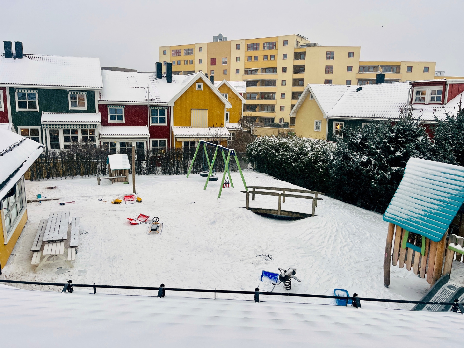 Det nye året kom med masse fin snø på uteplassen vår! Vi ønsker små og store alt godt for 2025, og gleder oss til å fortsette arbeidet med lek, læring, omsorg og inkluderende fellesskap i det nye året<3