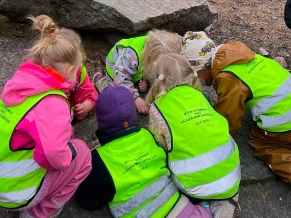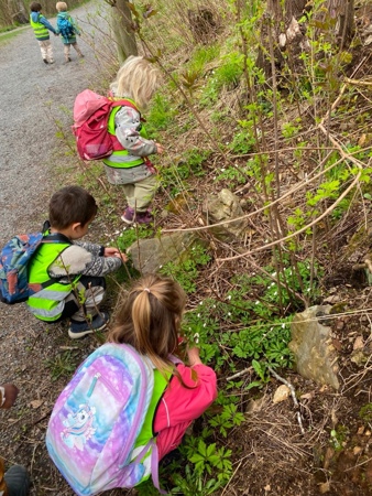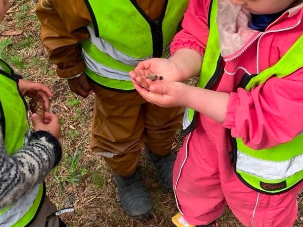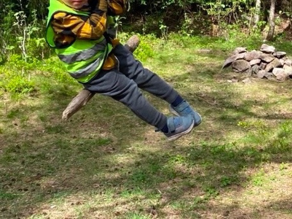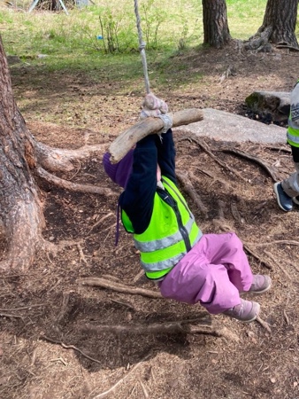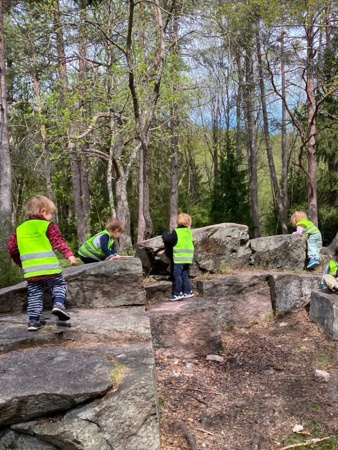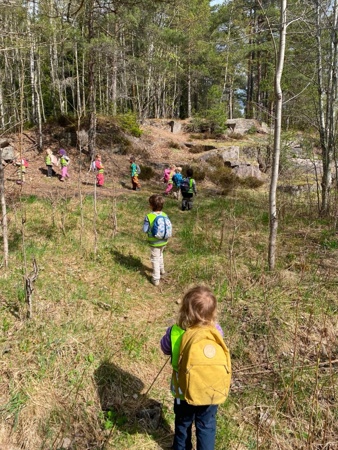 Jesperbarna har vært på tur til Tonsenhagen. Det er så mye spennende å oppleve i skogen; blomster, insekter, grener, stubber, steiner, fjell, mose, kongler og en død fugl som selvsagt måtte få en fin og verdig begravelse. Skogen er også en super arena for fysisk utfoldelse - der kan alle finne utfordringer på sitt nivå og oppleve mestring og glede over å bruke kroppen.