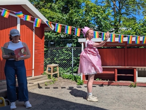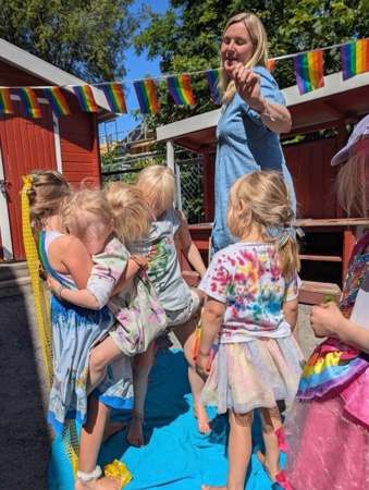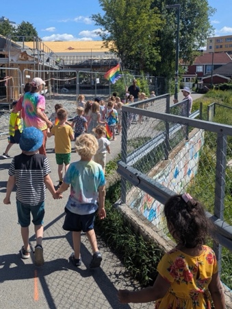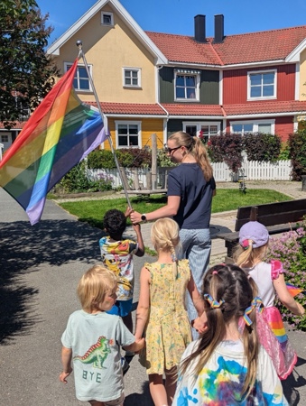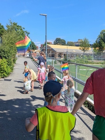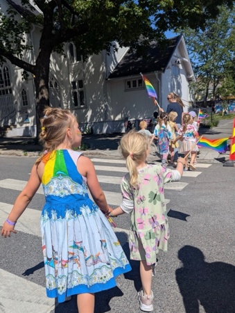 Denne uken har vi feiret kjærligheten og inkludering i Kardemomme, og fredag avsluttet vi med fargefest! I fellessamling fikk vi se "Prinsesse Henrik" - med vår helt egen Henrik og Marlén i hovedrollene, og gikk parade i gatene. Rammeplanen sier at "Barnehagen skal fremme likeverd og likestilling, motvirke alle former for diskriminering og fremme nestekjærlighet". Kardemomme skal være et trygt sted hvor alle skal føle seg inkludert i fellesskapet, og vi er stolte over å markere at alle har rett til å være den de er, og elske den de vil. Kjære Kardemommebarn og ansatte - STOLT av dere!