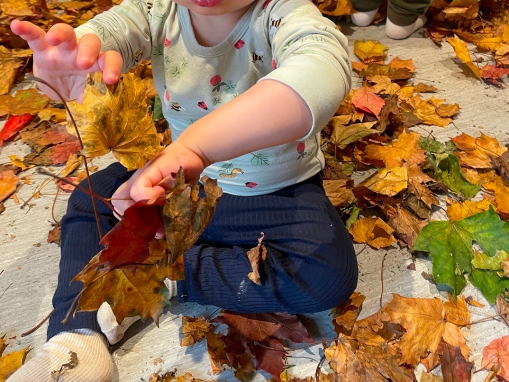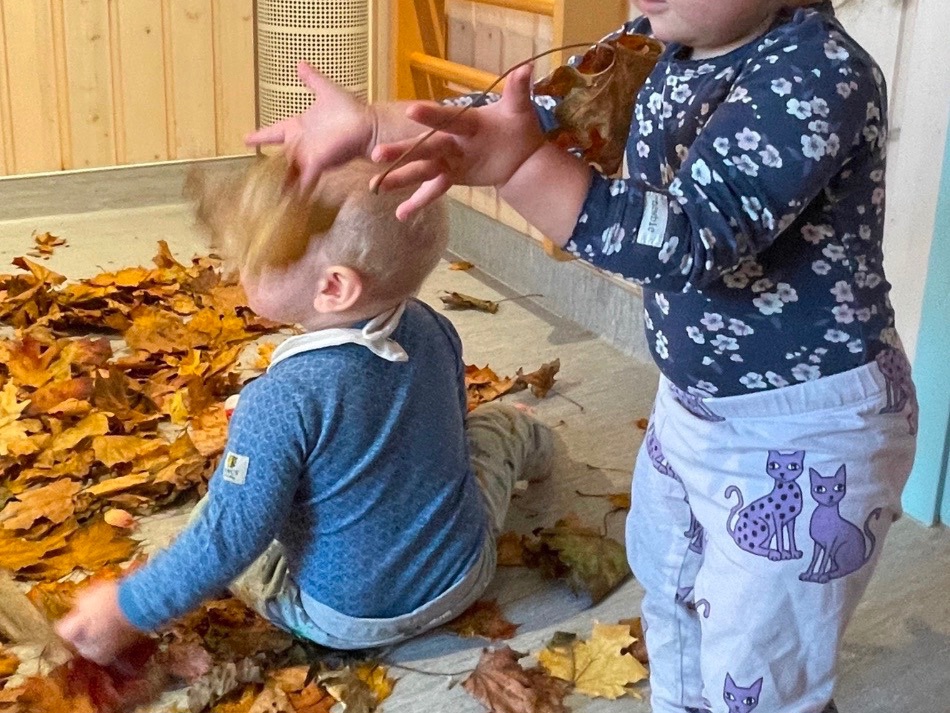 "Barnehagen skal bidra til at barna opplever og utforsker naturen til ulike årstider og opplever, utforsker og eksperimenterer med naturfenomener" (Rammeplanen). Høsten er her og Joantanbarna omfavner den! Løv er så fargerikt og fint, gøy å plukke, spennende å utforske, det lukter jord, det knaser når man smuldrer det opp, det er kjempegøy å base i og å kaste det opp i luften så det regner ned over hodene. Man kan også bruke det til forming ved å male på det eller lage fine høstpinnsvin. Og så kan man henge det opp i taket for den ultimate høststemningen også inne-we løøøv it!🍁🤎.