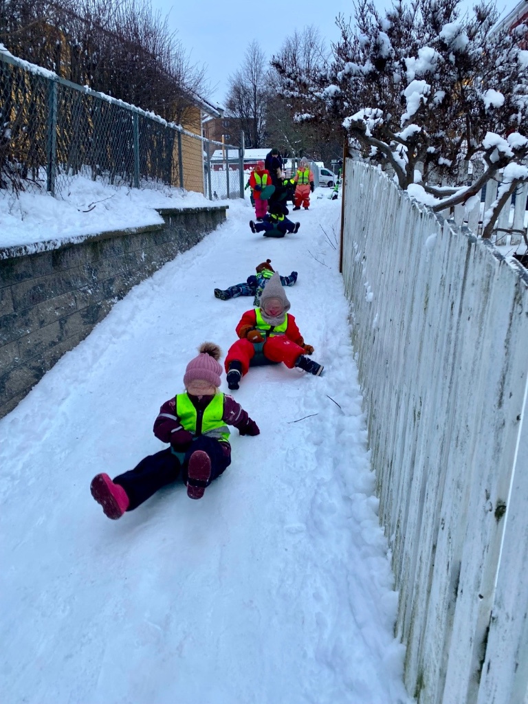 Det nye året kom med masse deilig snø - og vi har vært på mange aketurer med både små og store. I nærområdet kan alle finne en bakke som passer for sitt nivå, og tør man ikke helt alene kan man jo ake sammen med en venn eller en voksen. Det er også fint å bli trukket på akebrett ute i barnehagen. Vi har laget både snømenn, kjempestore snøballer og snøborg - det er så gøy med skikkelig vintervær!🩵 "Personalet i barnehagen skal legge til rette for at barna opplever trivsel, glede og mestring ved allsidige bevegelseserfaringer, inne og ute, året rundt." (Rammeplanen)