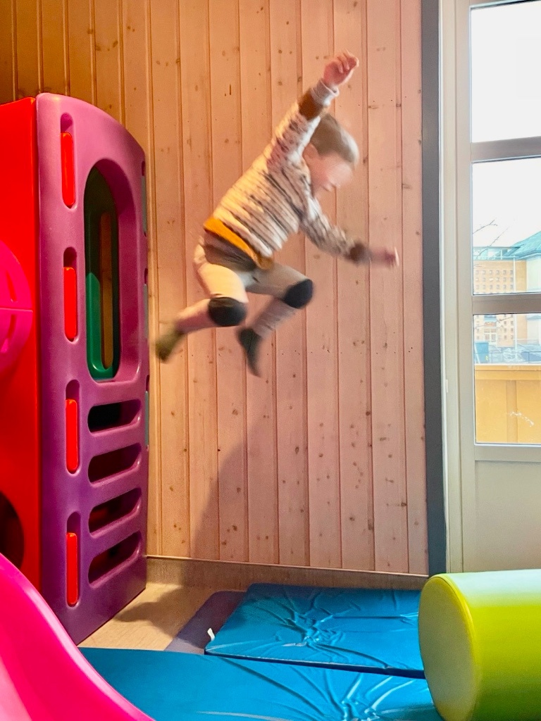 Barn trenger spenning og utfordringer for å utvikle seg og bli selvstendige og robuste. Gjennom å klatre, sykle, balansere og hoppe blir barn kjent med sin egen kropp og tilværelsens muligheter. Å få lov til å utfordre seg selv og erfare risikosituasjoner, er bra for barn. Risikofylt lek er en naturlig del av barns lek og det å utforske grenser; hva de får til og hva som er mulig. Dette har positiv betydning for fysisk-motoriske utvikling og for hvordan barn etter hvert klarer å håndtere risiko (Kvalnes & Sandseter, 2022).