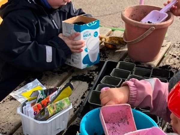 Det er vår i luften og vi har sådd frø. Frøene skal foreløpig få stå inne og spire og gro, til de er klare til å bli plantet ut på uteområdet vårt. Barna deltar ivrig i såingen og vanningen, og synes det er spennende å følge prosessen fra frø til plante <3 Rammeplanen sier at barnehagen skal bidra til at barna opplever og utforsker naturen og naturens mangfold. Ved å så frø og stelle planter lærer barna om livssykluser og får en tidlig forståelse for bærekraft.