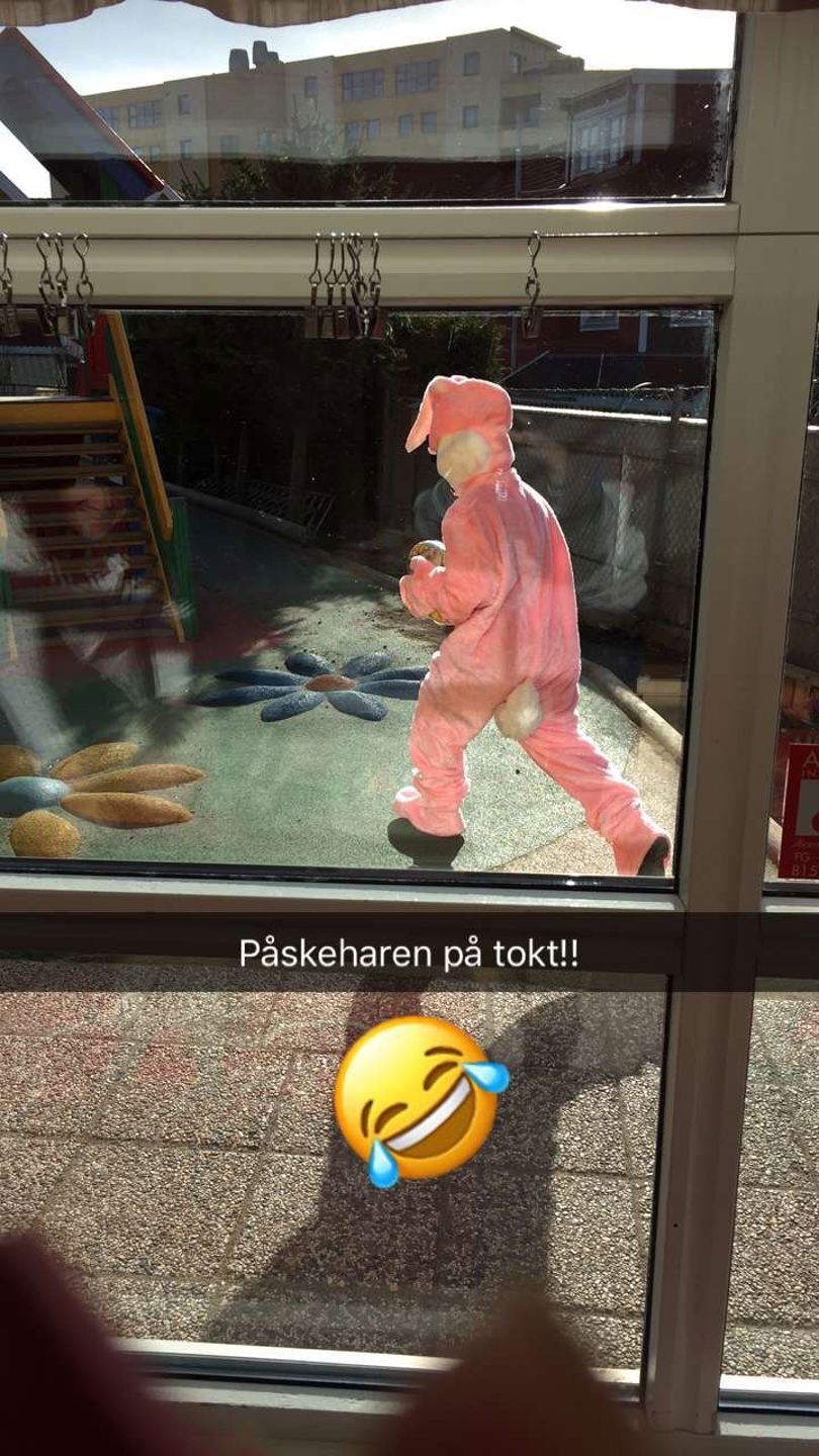 I dag fikk vi besøk av selveste Påskeharen som hoppet rundt på området vårt! Men han lurte ikke oss - da vi kom ut fant vi påskeeggene som han hadde gjemt :) God påske alle sammen!